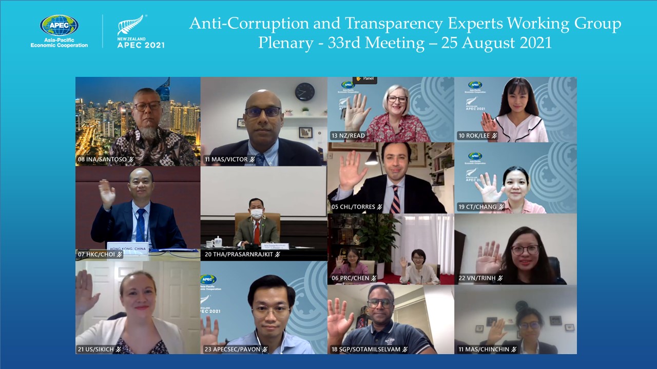 Delegates from Ministry of Justice and Agency Against Corruption attended the 3-day Workshop on Preventing Corruption in Crises jointly held by APEC, OECD and ADB from 10th to 12th of August, and the 33th APEC Anti-Corruption and Transparency Experts Working Group (ACTWG) meeting on 25th of the same month, 2021, all held in virtual format.