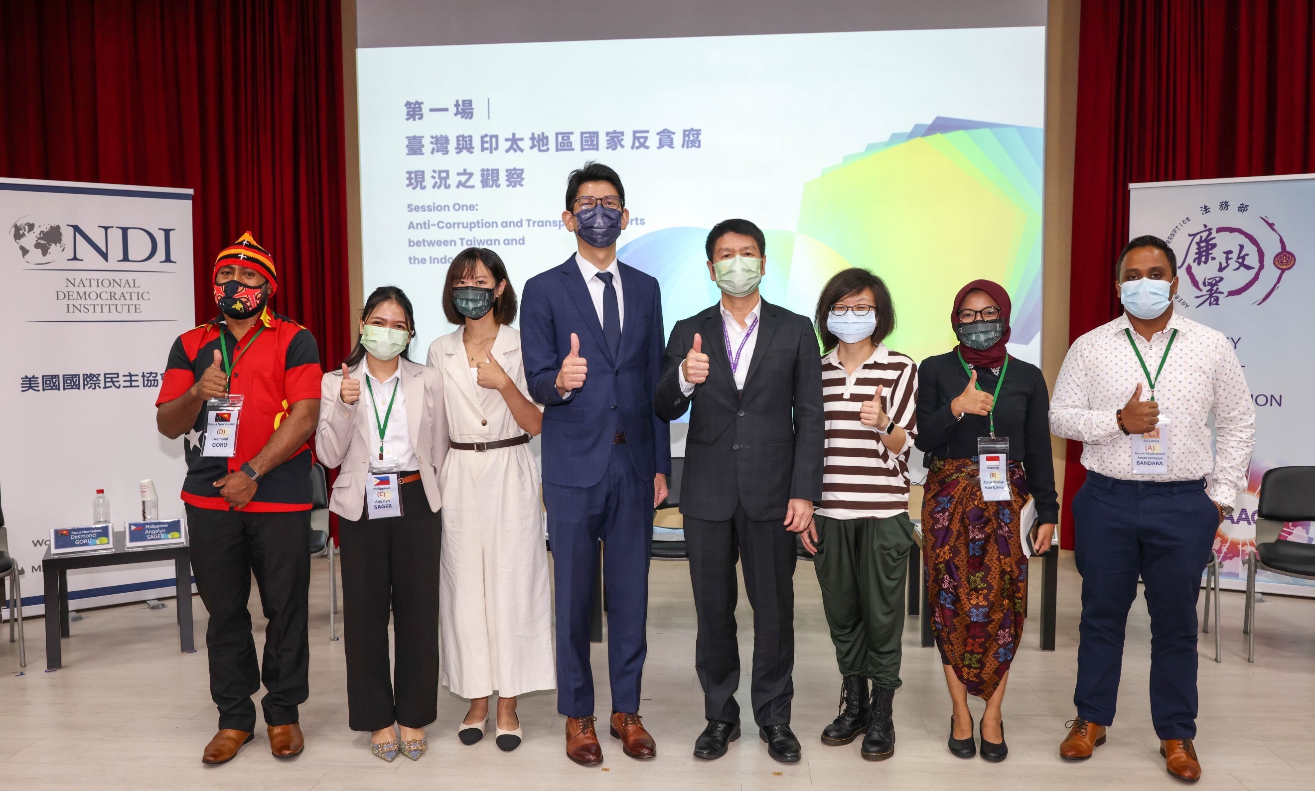 法務部廉政署與美國國際民主協會(NDI)台北辦事處、台灣透明組織協會(TICT)、財團法人開放文化基金會(OCF)、臺灣公共行政與公共事務系所聯合會(TASPAA)於我國辦理第二次聯合國反貪腐公約(UNCAC)國家報告國際審查會議期間,共同合作舉辦「印太青年國際廉政交流」系列活動,讓來自菲律賓、印尼、斯里蘭卡、巴布亞紐幾內亞等4國13名非政府組織之青年幹部,與我國關注公共行政及廉能治理之12名大學生及碩、博士生,共同以觀察員身份,觀摩我國UNCAC國際審查會議,並於會後舉辦意見交流工作坊,也透過實地參訪,深入瞭解交通部公路總局淡江大橋廉政平臺如何運作、財政部關務署基隆關臺北港的關務行政透明化相關措施,該系列活動於9月2日的「印太青年反貪腐暨透明倡議對話」達到最高潮,讓印太及國內青年們對臺灣進步的廉能建設留下深刻印象。