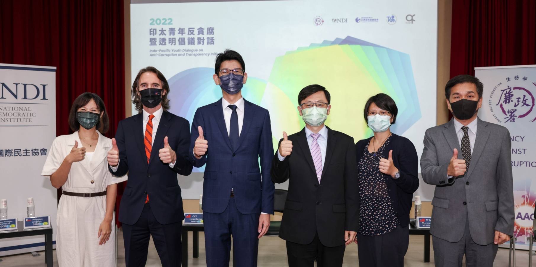 9月2日則於捷韻國際廳進行「2022年印太青年反貪腐暨透明倡議對話(Indo-Pacific Youth Dialogue on Anti-Corruption and Transparency Initiatives)」,分享彼此在一系列活動中所見所聞與自身寶貴經驗,論述各項廉政議題。本署莊榮松署長致詞時表示,「自由、民主、廉能、透明」是世界的普世價值,廉政署希望藉由與NDI合作,讓國際廉政合作開啟新的篇章。TICT吳怡融執行長闡述,廉而有能的政府才能成為人民之福,期勉青年透過相互交流,將寶貴經驗帶回彼此成長的地方,發芽成長為重要之價值。NDI吳志強總監指出,臺灣近年在開放政府取得亮眼成果,希望藉由此次交流,增進青年對廉潔透明的認同並投身廉政工作。美國在台協會(AIT)法務聯絡組組長Ty Cook則以貪腐對公、私部門都有嚴重的負面影響,美國聯邦調查局將盡最大之努力與大家合作,共同打擊貪腐守護廉潔。